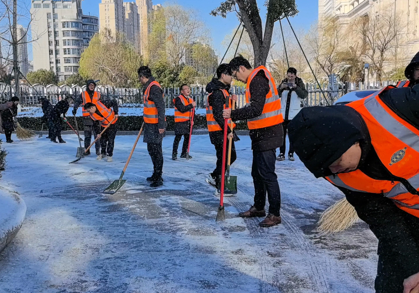 1月22日,臺州市迎來多年罕見大雪天氣,全市普遍出現(xiàn)積雪,道路結(jié)冰打滑,給市民生活帶來諸多不便。為盡快掃雪除冰,暢通道路,消除隱患,保障群眾出入安全,23日上午,由公司黨員青年職工組成的“曙光橙”志愿服務(wù)隊(duì),第一時(shí)間趕赴現(xiàn)場,開展清雪工作。志愿隊(duì)伍成員斗志昂揚(yáng),鐵鍬翻飛、掃帚舞動(dòng),將原本積雪覆蓋的路面清掃得干干凈凈,確...